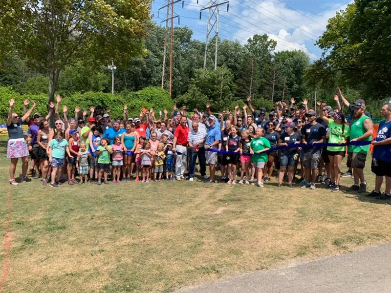 Click here to watch footage of the build day! The delay in opening has been waiting on contractors to install the special poured rubber surfacing which will be ADA compliant and allow wheelchair access to all parts of the play area. With the installation happening at the back-end of the week, the park is set for play on August 14!